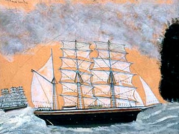 For me, the work of Alfred Wallis is a joy to behold. Call it naive art, label it as you would like, but there is something so innocent, so melancholy about it as to be called Art with a capital 'A'. That purity comes from the fact that he was never compromised by money: in fact all his life he never had any and struggled to sell his work. Despite this, he believed in his work and the ingenious ways he improvised when he could not afford materials by painting on cardboard ripped from packing boxes gives his work even more power. The melancholy comes from not just the fact that so great an artist was ignored in his lifetime but by the fact that what he painted from a lifetime of seafare was what was passing into history: the world of sail was being usurped by steamships.