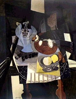 He was friendly with Dufy and Friesz (both were from Le Harve) and by 1906 was in the Fauve circle; by 1909 he knew Picasso well, and with him had started to work out the basis of a new approach to painting which developed into Cubism. By the outbreak of war in 1914 this close collaboration was at an end. Braque was called up immediately, was severely wounded in 1915, and was unable to resume painting until 1917, when he tried to pick up Synthetic Cubism where he had left off. Picasso, meanwhile, as a Spaniard not liable for military service, had gone his own way.