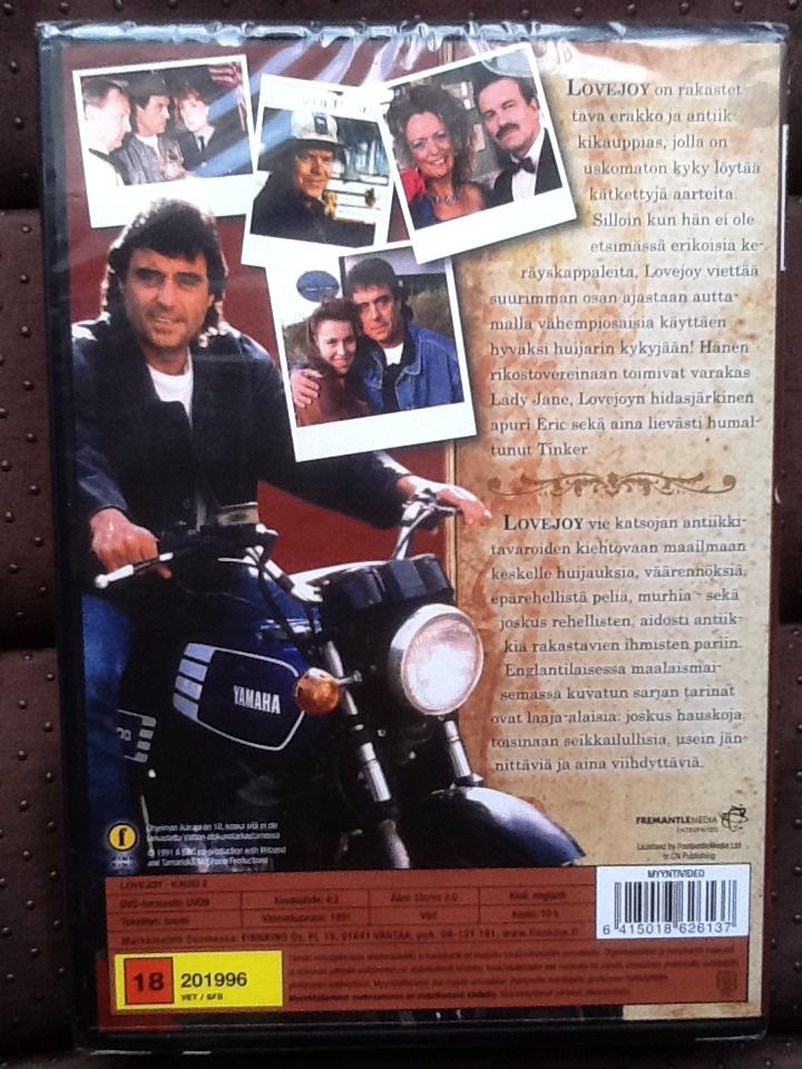 About This Item. Buy Dvd Dvd Details Lovejoy Review Lovejoy UK Dvds Caroline Langrishe Art Store Search SiteKausi 2F I N N I S H D V D We are based in South London near Croydon and if preferred this item can be picked up by appointment. Just e-mail here. Actors: Ian McShane, Dudley Sutton, Phylis LoganFormat: PAL Language: English Subtitles: FinnishNumber of Discs: 1 Classification: PG All the details of this official Finnish release are on the scans below. GalleryD V D Enlarge Image Enlarge ImageLOVEJOY DVDS ALSO AVAILABLE: Affiliate/Advertising policy. Please note: this item is only sold within UK & Europe as the chances are it won't work on Dvd Players outside this region. 2019: SOLD and won't be replaced. 'New & sealed'.LOVEJOY DVDS ALSO AVAILABLE: Affiliate/Advertising policy. Back to Lovejoy UK DvdsCurrently in Stock. Buy Dvd Dvd Details Lovejoy Review Lovejoy UK Dvds Caroline Langrishe Art Store Search Site Top of Page © Lenin ImportsE-mail