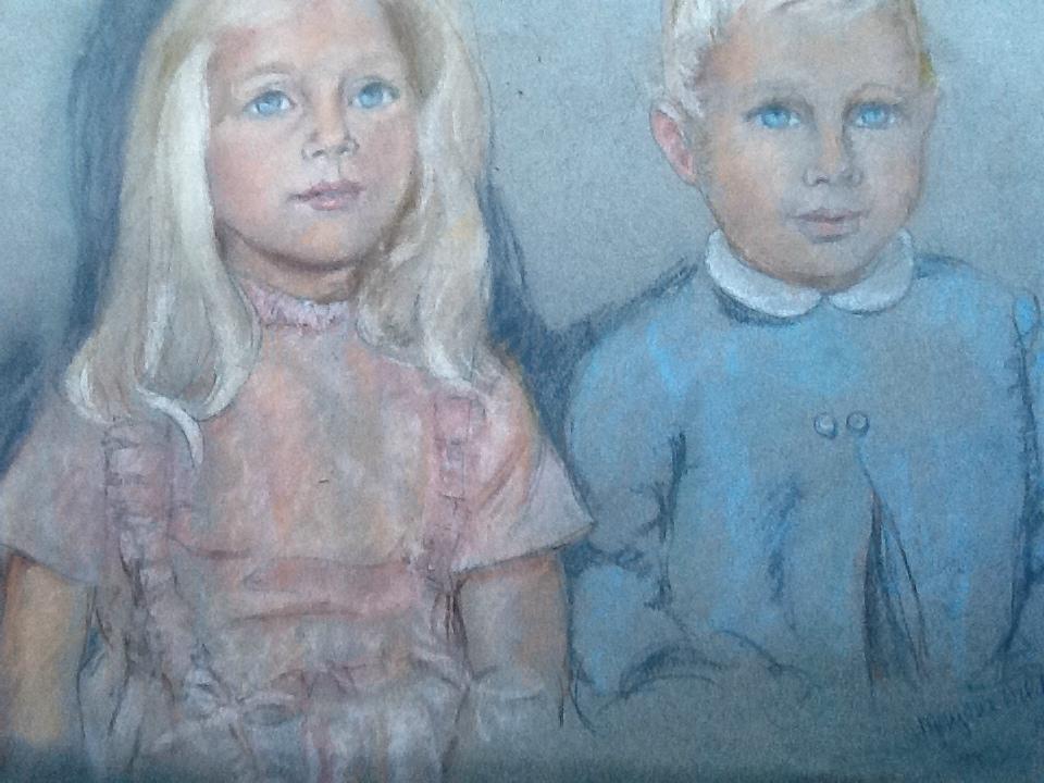 Marjorie Wilding ~ Children Charming piece. A study drawing of 2 children. Pastel. Image size: 15" x 13" inches. Comes with mount.