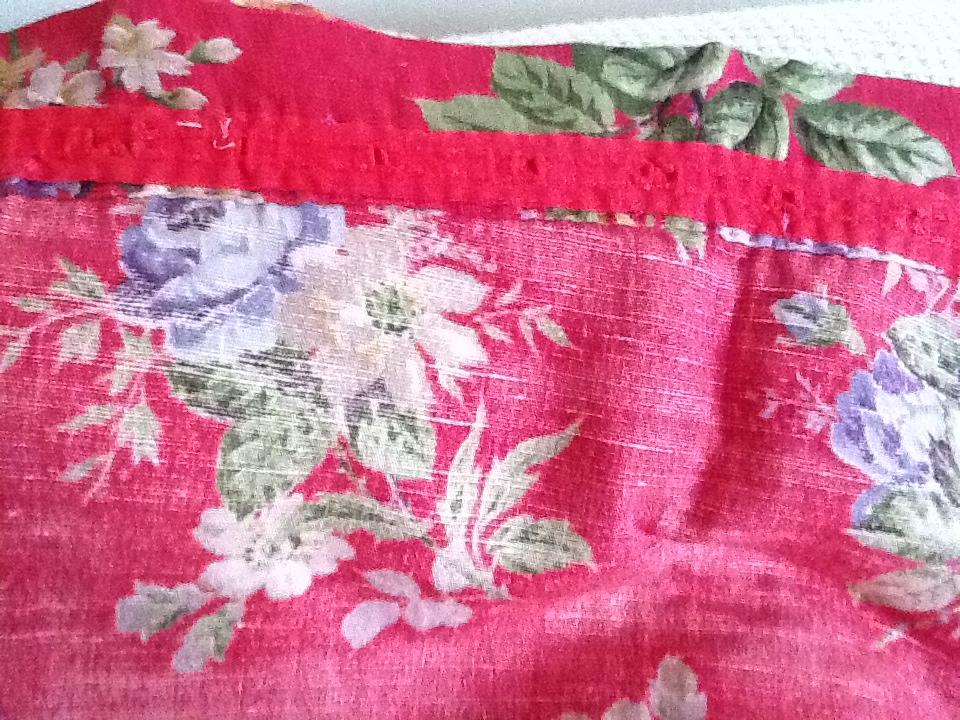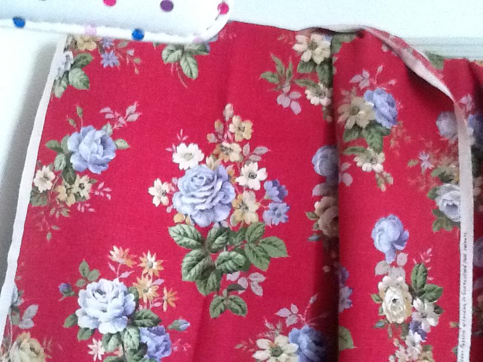VINTAGE CURTAINS Header Photo: Low resolution detail from curtains. Header Photo © Various. Vintage Items in Stock - Introduction Complete List of Items in Stock Search Site Lovely vintage curtains blue and yellow roses on red background . Very good condition. No holes or fading. Unlined with single tape. Cotton. Hand made.