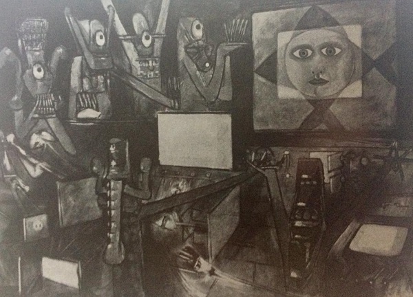 Tempera on paper, cardboard and canvas, 54 x 73 cm